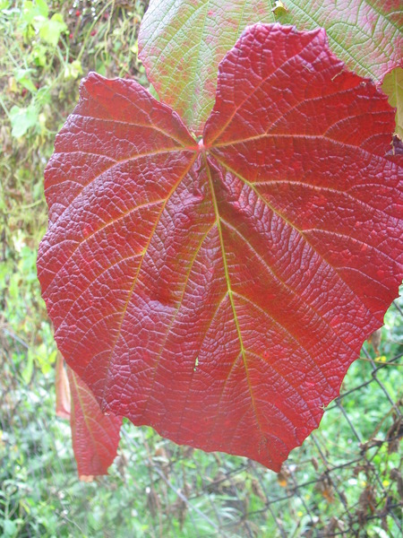 velké, srdcovité, celokrajné, bazální výkroj je lyrovitý, otevřený; povrch listu je puchýřnatý, vespod plstnatý