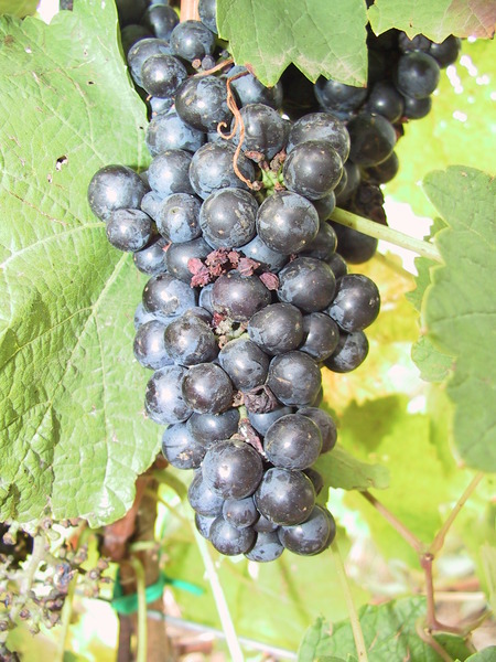 malý až středně velký kuželovitý hrozen, hustý; má menší kulaté bobule, modročerné barvy