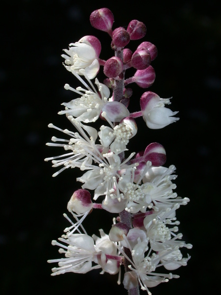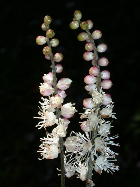 - drobné, aktinomorfní, volnoplátečné s 4-5 brzy opadavými, krémově bílými nebo purpurově naběhlými petaly, s množstvím bílých tyčinek a s 2-8 pestíky